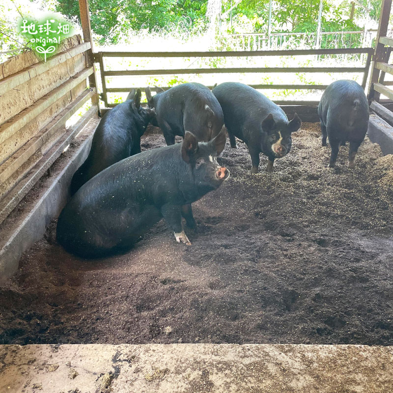 加治木町の農場で育てている「六白」と呼ばれている黒豚。
